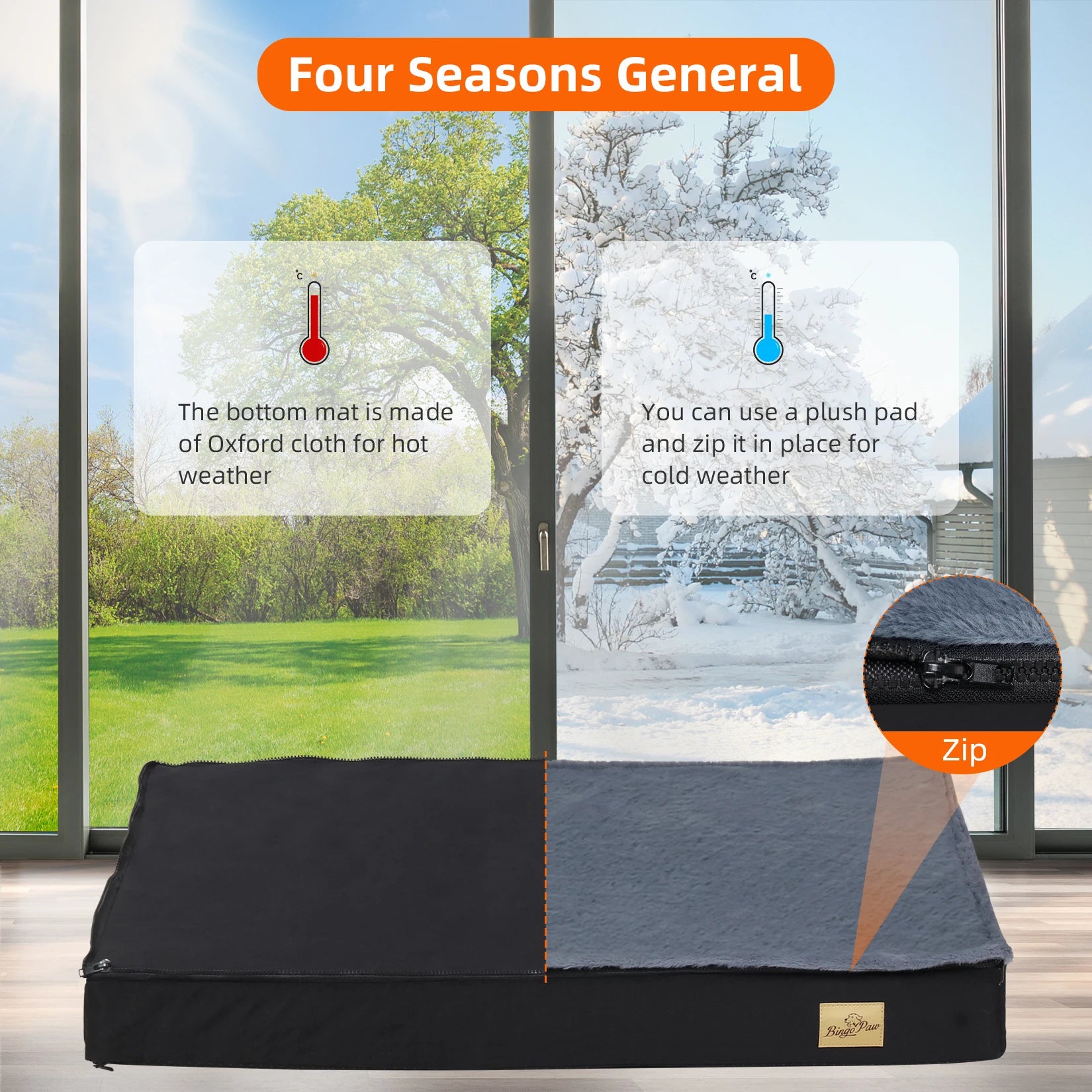 βοΈβοΈ 2-in-1 Comfort for All Seasons: Soft PV plush mattress keeps pets warm in winter; remove for a cooler summer sleep surface.